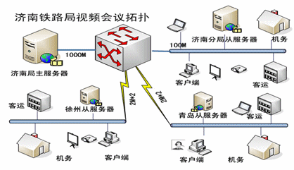 濟(jì)南鐵路局規(guī)模龐大,機(jī)構(gòu)復(fù)雜,由于鐵路的特殊性,一個部門或機(jī)構(gòu)往往分布在鐵路沿線的數(shù)十個站段。因此,溝通和會議的模式也是多種多樣的,會議使用單位較多而且頻繁,這就對網(wǎng)絡(luò)視頻會議系統(tǒng)提出了很高的要求,即能滿足當(dāng)?shù)氐臅h,又要能夠滿足跨區(qū)域的會議。