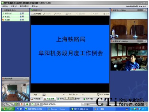 CTI論壇(ctiforum)08月06日消息: 日前,京九干線主力機務段——上海鐵路局阜陽機務段成功啟動視維Super-V視頻會議系統(tǒng)。阜陽機務段的領導和職工,每天早上8點上班后,第一件事情就是登陸視頻會議系統(tǒng),匯報前日工作情況、部署當日工作內容。已然,山大聯(lián)潤為上海路局阜陽機務段部署的阜陽機務段視頻會議系統(tǒng),成為鐵路部門必不可少的遠程溝通交流工具,在有效提高鐵路系統(tǒng)溝通效率的同時,保障了鐵路運輸的安全,極大滿足了鐵路部門暑期運營業(yè)務對溝通和會議的需求。CTI論壇報道