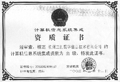 按照《計(jì)算機(jī)信息系統(tǒng)集成資質(zhì)管理辦法(試行)》和《計(jì)算機(jī)信息系統(tǒng)集成資質(zhì)等級(jí)評(píng)定條件(試行)》,經(jīng)信息產(chǎn)業(yè)部計(jì)算機(jī)信息系統(tǒng)集成資質(zhì)認(rèn)證管理委員會(huì)審定,在不久前,信息產(chǎn)業(yè)部公布的計(jì)算機(jī)信息系統(tǒng)集成資質(zhì)證書(shū)企業(yè)名單中,杭州三匯數(shù)字信息技術(shù)有限公司獲得叁級(jí)認(rèn)證。杭州三匯公司供稿 CTI論壇編輯