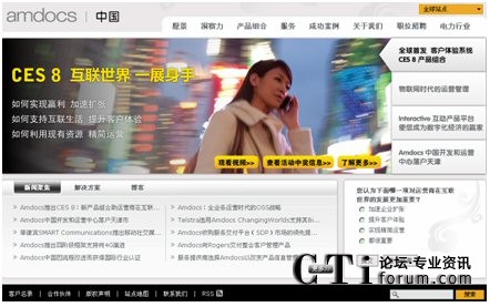 CTI論壇(ctiforum)1月27日消息(記者 潘婷):2010年1月26日——客戶體驗系統(tǒng)的領(lǐng)先提供商Amdocs公司(紐約證券交易所代碼:DOX)日前宣布推出Amdocs CES 8,并且Amdocs新版中文網(wǎng)站也同步上線。圖:Amdocs新版中文網(wǎng)站首頁