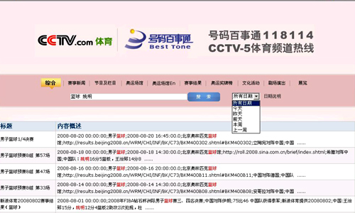 據(jù)悉,2008北京奧運(yùn)會(huì)期間,118114“央視體育頻道熱線服務(wù)”共接受各類相關(guān)奧運(yùn)的信息查詢近61萬次,日均查詢量超過35000次,是奧運(yùn)開幕前的四倍之多。其中,8月15日的單日查詢量更是一舉突破50000次大關(guān),創(chuàng)造了熱線開通以來的最高紀(jì)錄。