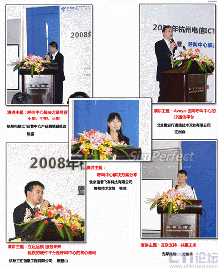11月4日,北京信普飛科、上海羅盤、集安行、杭州三匯、杭州領先、思安華勝、七星藍圖、康達特等公司攜手 杭州電信 共同舉辦的2008杭州電信ICT運營中心技術交流會,暨呼叫中心解決方案推薦會在杭州海華大酒店如期舉行。圖一:信普飛科總經(jīng)理 王曉暉