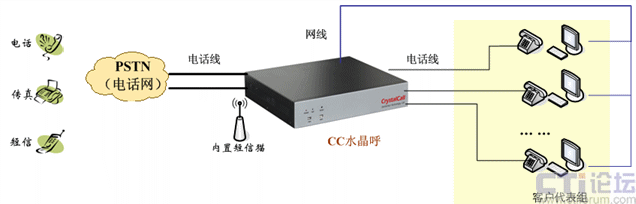 CC水晶呼單獨(dú)組網(wǎng),對(duì)外接運(yùn)營(yíng)商的電話線,對(duì)內(nèi)接分機(jī)線,組網(wǎng)說(shuō)明如下: