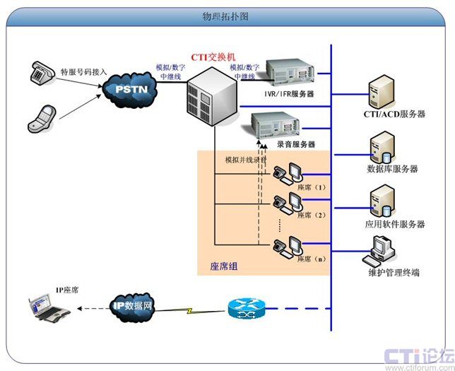 針對中大型呼叫中心項目的建設(shè)需求:支持大話務(wù)量呼叫、平臺靈活可靠性,可根據(jù)業(yè)務(wù)進行靈活定制等特點,simperfect推薦采用BasicCall呼叫中心中間件來構(gòu)建中大型的呼叫中心項目,可根據(jù)項目需求靈活選擇硬件交換機、IVR和錄音的組網(wǎng)方案。CTI論壇編輯