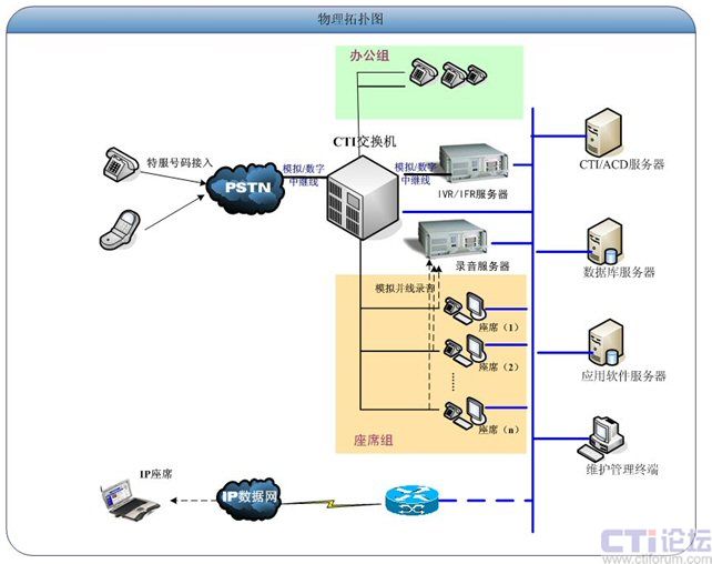 現(xiàn)在的呼叫中心建設(shè)更多是在企業(yè)中的應(yīng)用,對于企業(yè)來說,很少有單純性的座席,更多是企業(yè)辦公和呼叫中心混合的應(yīng)用,這種應(yīng)用一方面能夠最大化利用交換機(jī),節(jié)省硬件投資;另一方面讓各部分人員溝通更便利,提高人員協(xié)同工作效率。針對這種情況,BasicCall推出辦公和交換機(jī)混合應(yīng)用方案:CTI論壇編輯