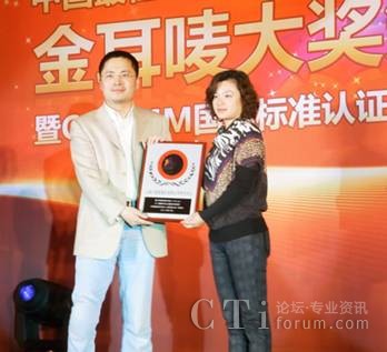 CTI論壇(ctiforum)10月25日消息(記者 潘婷婷):“金耳嘜大獎(jiǎng)”頒獎(jiǎng)儀式于近日在北京舉行。北京郵電大學(xué)CTI研究中心副主任、北京信普飛科科技有限公司董事長(zhǎng)王曉暉,應(yīng)邀參加大會(huì),并為獲獎(jiǎng)企業(yè)頒獎(jiǎng)。CTI論壇報(bào)道