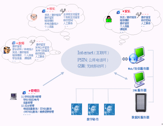 為配合教育部"校校通"工程的順利實施,深圳市潤聲信息系統(tǒng)有限公司推出的"家校直通車"系統(tǒng)(SchoolToHome),在家長和老師之間搭建起一座信息化橋梁。該系統(tǒng)經(jīng)過兩年多,以及多個地市的實施,得到了廣大老師、學生及家長的好評!