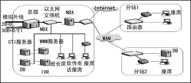 網(wǎng)音十萬元級高性能IPCC能夠在WAN/LAN內(nèi)真正實現(xiàn)全包交換技術的語音應用平臺。它包括一個基本的NBX硬件平臺單元、一臺高性能服務器及相關路由控制、呼叫管理、通用坐席應用及通用數(shù)據(jù)庫接口等軟硬件產(chǎn)品,它支持8外線、8座席的應用規(guī)模。在此平臺基礎上,系統(tǒng)擴容時只需增加相關軟件使用許可證、外線接口卡及坐席終端即可輕松將此平臺服務容量擴充至最大外線容量90端口,最大座席容量150席的應用規(guī)模。同時,此種應用解決方案對集中呼入/呼出控制,分散點多,每分散點座席數(shù)少,個點通過數(shù)據(jù)線路與接入平臺連接的分布式Call