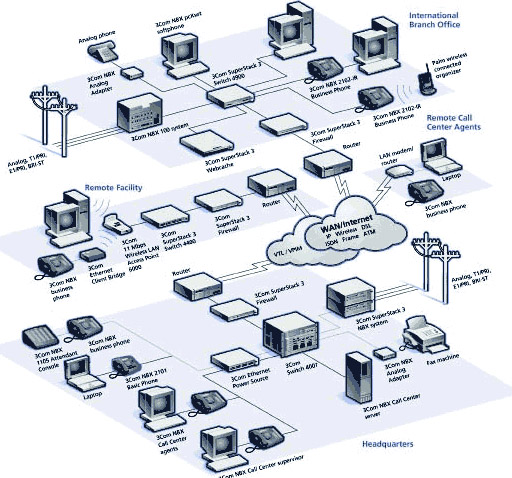 由于業(yè)務發(fā)展需要,公司屏棄了原有傳統(tǒng)PBX電話系統(tǒng),采用語音與數(shù)據(jù)融合技術(shù)的華為3com 網(wǎng)絡電話系統(tǒng)NBX,從而使企業(yè)間的通訊模式發(fā)生了革命性的改變。