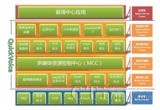 - 應用接口層,上層應用必須通過應用接口調(diào)用各種媒體服務,確保了應用對下層平臺的合法調(diào)用,從而保證整個平臺的穩(wěn)定性。QuickVoice提供了豐富的簡單易用的應用接口,使用戶可以最大限度發(fā)揮平臺功能,構筑任意復雜的呼叫中心應用