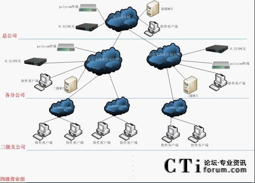 通過H.323會議網(wǎng)關(guān),把polycom終端信號接到新視頻會議系統(tǒng)中,保護(hù)原有投資,建立大規(guī)模一體化視頻會議的應(yīng)用。