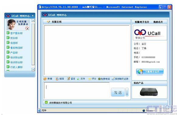 是擎旗技術(shù)提供的第五代呼叫中心(多媒體呼叫中心),為客戶提供多種服務(wù)手段(即時(shí)通訊、短信、電話、視頻、Web方式等),實(shí)現(xiàn)專用座席、座席的不間斷、全地域支持、24小時(shí)為客戶提供的基于電子商務(wù)時(shí)代的銷售服務(wù)一體化的平臺(tái)。