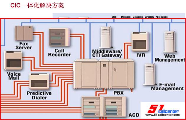 我給我們的產品做一個定位,就是一體化解決方案的呼叫中心。傳統(tǒng)的基于PBX的呼叫中心解決方案,我們把中間的這一塊放大,有傳真系統(tǒng)、語音信箱、IVR、Recorder記錄系統(tǒng)、還有預測外呼系統(tǒng)。每個系統(tǒng),都是獨立的,而且需要自己的服務器、自己的應用軟件以及業(yè)務模式。我們的CIC解決方案,把這些所有的功能全部濃縮在一個服務器之內,也可以把它濃縮在一個Webex內,一個盒子之內,這個盒子就是我們的CIC。