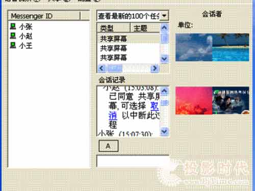 清揚(yáng)即時(shí)通信與視頻會(huì)議軟件: 通過視頻會(huì)議,只要坐在計(jì)算機(jī)前,就可以與本地或者外地,固定或者移動(dòng),局域網(wǎng)或者廣域網(wǎng)的同事們進(jìn)行跨地域空間的卻又面對(duì)面的視頻會(huì)議。通過屏幕共享,坐電腦前能夠觀看遠(yuǎn)程的電腦操作,也可以操作電腦讓遠(yuǎn)程電腦觀看;通過共享播放,把VCD教育片播放給遠(yuǎn)程電腦觀看,也可以收看遠(yuǎn)程的播放;通過即時(shí)通信,把通知瞬間發(fā)布到所有同事,也可以把文件瞬間傳送給大家,還能夠接受來自同事的通知信息和文件;通過遠(yuǎn)程協(xié)助,可以求助同事遠(yuǎn)程操作自己的電腦等等,……,有了清揚(yáng)即時(shí)通信與視頻會(huì)議,遠(yuǎn)在天涯的辦公室已近在眼前,移動(dòng)辦公和異地辦公也不再有隔閡。投影時(shí)代