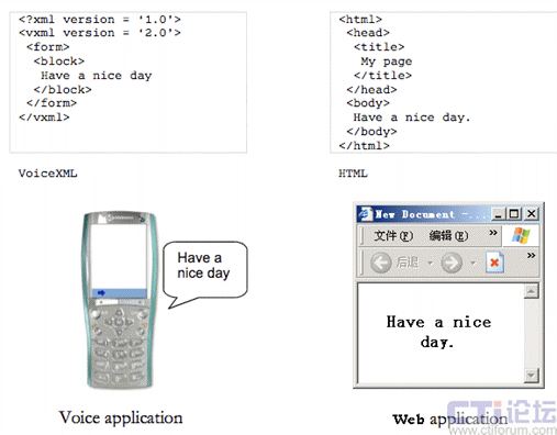 一、概述圖一、VoiceXML應(yīng)用和WEB應(yīng)用的比較