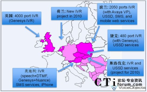 WEB和語(yǔ)音等渠道的整合;第二,為客戶提供簡(jiǎn)單直觀的自助服務(wù)選項(xiàng);第三,便捷部署業(yè)務(wù),快速分析客戶行為,調(diào)整業(yè)務(wù)方式。VoiceObjects成功克服這三個(gè)挑戰(zhàn),在歐洲T-Mobile贏得多個(gè)國(guó)家的份額,并且有不斷增長(zhǎng)的趨勢(shì)。
