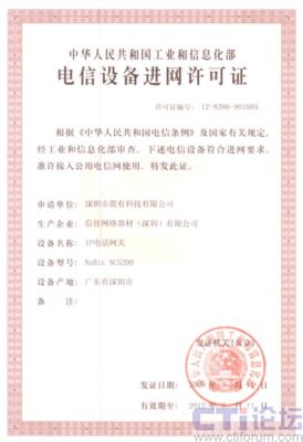 CTI論壇(ctiforum)05月15日消息: 日前從深圳市震有科技有限公司傳出消息,公司自主研發(fā)的NuBiz NC5200 IP電話網(wǎng)關設備順利通過工業(yè)和信息化部電信設備認證中心的審核,取得“電信設備進網(wǎng)許可證”。此舉標志著震有科技的NuBiz交換產(chǎn)品已成功取得進入國家電信網(wǎng)的資質(zhì),為大規(guī)模電信級推廣應用打下了基礎。