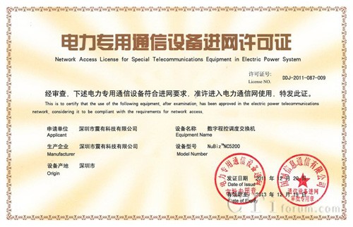 CTI論壇(ctiforum)12月22日消息(記者 張潔):日前從深圳市震有科技有限公司獲悉,震有科技數(shù)字程控調(diào)度交換機(jī)榮獲電力專用通信設(shè)備進(jìn)網(wǎng)許可證。CTI論壇報(bào)道