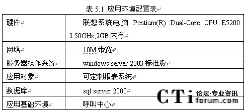 該部分將可定制報表系統(tǒng)應用于呼叫中心,以驗證系統(tǒng)正確性。其設(shè)備配置環(huán)境如表5.1所示。