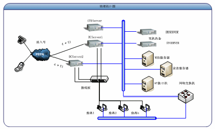 近年來(lái),通訊業(yè)正經(jīng)歷著前所未有的變革和發(fā)展。隨著寬帶的普及、3G的發(fā)展、固話(huà)ARPU值的進(jìn)一步萎縮,眾多專(zhuān)網(wǎng)通信企業(yè)正經(jīng)歷著規(guī)?s小、話(huà)費(fèi)流失之痛,其發(fā)展正面臨著前所未有的挑戰(zhàn)。為了更好的發(fā)展、爭(zhēng)取更大的利潤(rùn)空間,專(zhuān)網(wǎng)企業(yè)逐漸利用自身在業(yè)務(wù)內(nèi)容上的優(yōu)勢(shì),走有企業(yè)自身特色的通訊服務(wù)之路。系統(tǒng)結(jié)構(gòu)圖