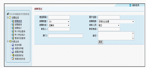 在故障受理方面,該系統(tǒng)同樣出色。它可以建立統(tǒng)一的語(yǔ)音受理號(hào)碼和建立網(wǎng)站,方便用戶(hù)通過(guò)語(yǔ)音和電腦雙途徑進(jìn)行故障申報(bào)。而出色的無(wú)紙收發(fā)傳真功能更是方便使用者通過(guò)網(wǎng)絡(luò)用軟件的方式發(fā)送傳真或查詢(xún)接收到的傳真文件。