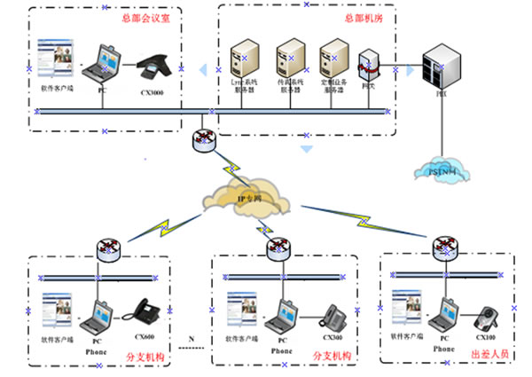 在方案的推進過程中,我們在各大會議室部署了CX3000、在桌面分別部署了CX600與IP331。通過這些終端的自身的優(yōu)勢及與系統(tǒng)的配合,實現(xiàn)了完整的電話體驗、PSTN無縫結(jié)合、LYNC完整的企業(yè)級語音功能、 高清晰語音質(zhì)量 、專業(yè)的語音會議等用戶需求,F(xiàn)在此方案在鳳凰網(wǎng)的會議室及桌面的應(yīng)用效果良好,場景應(yīng)用圖如下:
