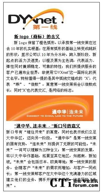 CTI論壇(ctiforum)08月20日消息: 知名網絡服務商第一線安萊,十年間憑借經驗豐富的團隊,靈活的服務、可靠的網絡系統(tǒng)等,遙遙領先于眾多競爭對手,傲然屹立于大中華地區(qū)。目前,正值第一線安萊十周年慶之際,全新的企業(yè)商標和“通中華.連未來”的新口號也向大眾展示。公司提出將幫助客戶實現(xiàn)“立足大中華,拓展全世界”的愿景。