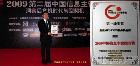 CTI論壇(ctiforum)11月25日消息(記者 張塵):2009年11月19日,2009年中國(guó)信息主管年會(huì)在北京世紀(jì)金源大飯店盛大召開(kāi),會(huì)議共吸引了各行業(yè)千名CIO線上與線下的參與。作為中國(guó)CIO云集的高峰會(huì)議,第一線安萊全程參與了本次大會(huì),從產(chǎn)品方案與展示等方面向業(yè)界展示了第一線安萊10年多來(lái)在MPLS VPN服務(wù)領(lǐng)域的最佳實(shí)踐經(jīng)驗(yàn)與卓越的市場(chǎng)領(lǐng)導(dǎo)地位,贏得了各與會(huì)嘉賓及CIO們的普遍認(rèn)同和稱贊。
