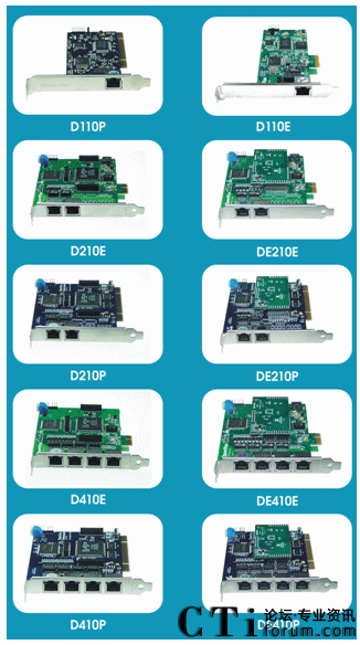 OpenVox的D系列數(shù)字中繼接口卡,單卡可以支持1-4個(gè)E1/T1/J1接口,支持PCI,PCI Express等計(jì)算機(jī)總線接口,提供方便可靠RJ-45或者BNC接口,支持中國1號(hào)信令、PRI信令、7號(hào)信令,支持多種語音編碼解碼格式,天生的IP架構(gòu),無需IP語音卡就可以構(gòu)建VoIP通信設(shè)備,利用IP網(wǎng)提供跨網(wǎng)通信服務(wù)。CTI論壇報(bào)道