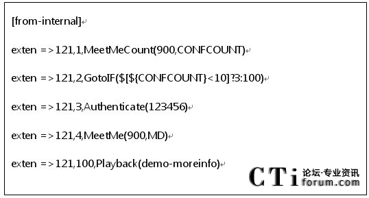 轉(zhuǎn)到meetme.conf的最后一行,在最后面添加如下代碼: