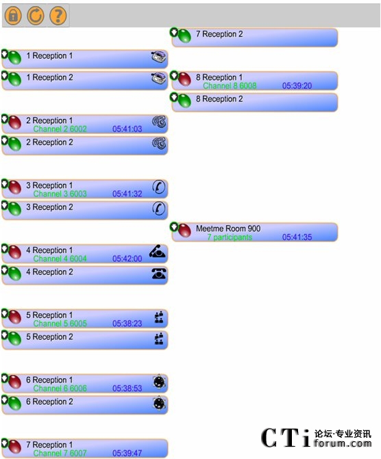 分別撥通八部電話到電話會議,這里撥打121,然后系統(tǒng)提示密碼,這里輸入123456,最后系統(tǒng)提示輸入會議房間號,這里是900。成功撥入后,如果你是第一個進(jìn)入會議的人,系統(tǒng)會提示你是第一個人,然后播放音樂,直到下一位人到來,音樂停止。接下來的人成功撥入會議后,會聽到一小段系統(tǒng)音樂,然后聽到會議。