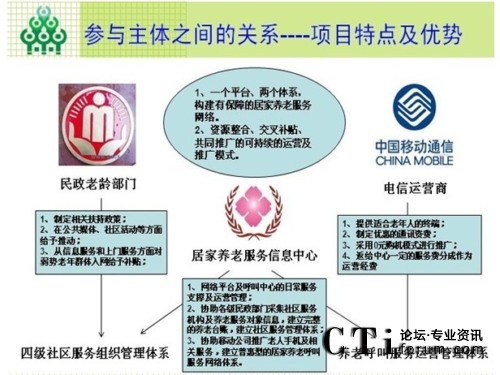 項目運作思路,以專業(yè)的運營機構(gòu)(民辦非企業(yè))作為項目支撐點,將政府推動居家養(yǎng)老服務(wù)體系建設(shè)的需求和電信運營商要擴大和穩(wěn)定用戶群的需求向結(jié)合,共同建設(shè)和推動居家養(yǎng)老呼叫服務(wù)網(wǎng)絡(luò)體系的建設(shè)。