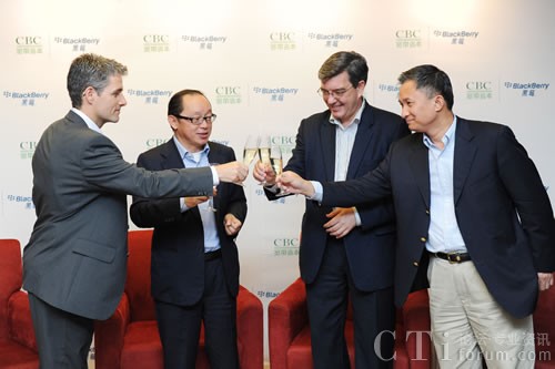 CTI論壇(ctiforum)5月28日消息(記者 楊佳林):北京,黑莓合作伙伴基金宣布在中國投入1億美元,成立黑莓合作伙伴基金(中國),用以投資和支持中國的移動通訊產(chǎn)業(yè)發(fā)展。黑莓合作伙伴基金(中國)是黑莓合作伙伴基金和寬帶資本的一個聯(lián)合投資項目。該基金將專門用來投資中國新興移動生態(tài)系統(tǒng)的發(fā)展,以支持在中國這一全球最大的移動市場上互聯(lián)網(wǎng)、軟件和計算基礎(chǔ)設(shè)施領(lǐng)域的創(chuàng)新。該基金募集預計將于2010年8月31日結(jié)束。從左到右為:Marc Faucher(黑莓合作伙伴基金合伙人),田溯寧先生(CBC寬帶資本創(chuàng)始人),謝國睿先生(RIM中國區(qū)總裁),許志明先生(CBC寬帶資本投資團隊成員)
