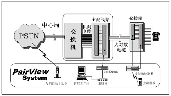 8. 可為電信公司帶來良好的收益和長遠的經(jīng)濟利益 本地環(huán)路測試系統(tǒng)(PairView)的構(gòu)成如下: