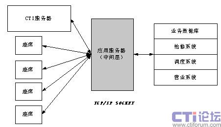 數(shù)據(jù)接口采用三層C/S結(jié)構(gòu),通過構(gòu)建功能強(qiáng)大的應(yīng)用服務(wù)器,把呼叫中心的數(shù)據(jù)流與燃?xì)夤究蛻粝到y(tǒng)、營(yíng)業(yè)系統(tǒng)、搶修系統(tǒng)和燃?xì)庹{(diào)度系統(tǒng)結(jié)合起來(lái),充分利用了已有系統(tǒng)標(biāo)準(zhǔn)的數(shù)據(jù)接口,實(shí)現(xiàn)對(duì)后臺(tái)數(shù)據(jù)庫(kù)的訪問。如圖2