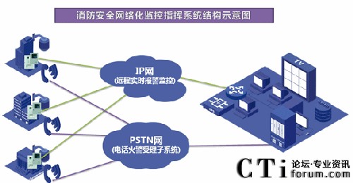 消防網(wǎng)絡(luò)傳輸設(shè)備通過以太網(wǎng)(TCP),電話線(PSTN),無線(GPRS、CDMA)將火災(zāi)報(bào)警主機(jī)接收到的火警及運(yùn)行信息上傳的鋼廠消防安全監(jiān)控指揮中心。