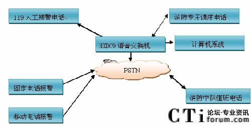 火警電話匯接至調(diào)度程控交換機(jī),將火警電話通過CTI服務(wù)器提取主叫號碼并傳送到火警受理工作站。