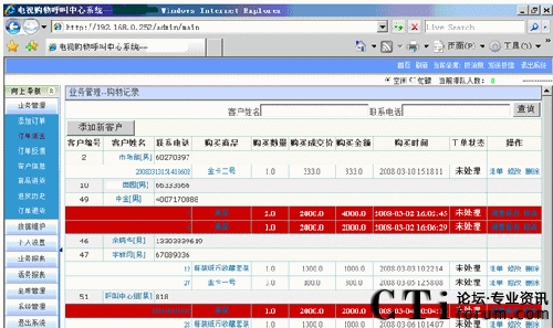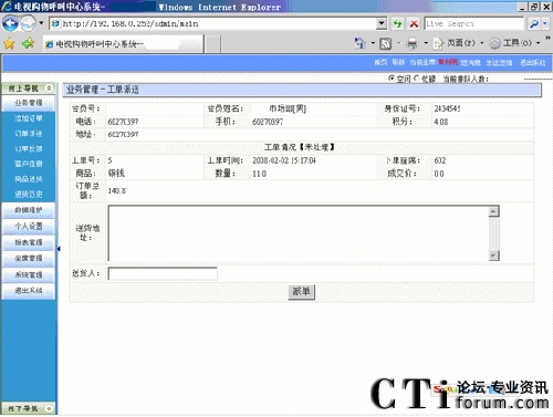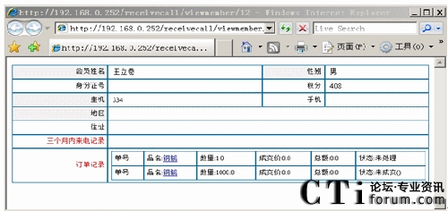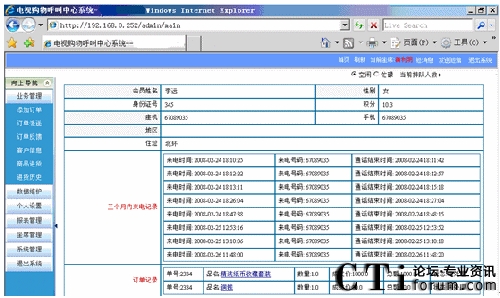 座席員工可以根據(jù)姓名、電話、訂單編號查詢出客戶的詳細定購信息、郵寄單號、歷史定購、咨詢歷史等。
