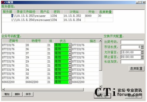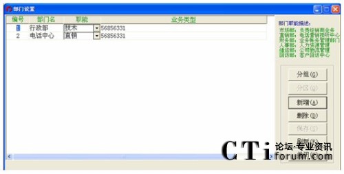 點擊新增來設(shè)置集團電話,并點擊保存來保存集團電話號,集團電話的呼入不算進(jìn)線。要修改某集團電話號,選定電話那一欄的對應(yīng)電話號,直接修改就可以了。
