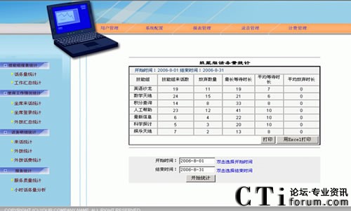 - 系統(tǒng)呼叫總數(shù)、系統(tǒng)接通總次數(shù)、工作量統(tǒng)計(jì)。