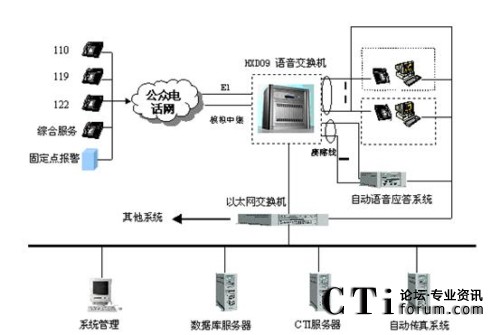 該系統(tǒng)主要分為電信子系統(tǒng)(完成聯(lián)動中心與各電信公司之間話音的傳輸、交換和分配,以及主叫號碼和主叫地址的自動查詢和傳輸?shù)龋⒔泳行淖酉到y(tǒng)(統(tǒng)一接聽和處理市民的報警、求助電話)、指揮調度子系統(tǒng)(或稱為處警中心,通過直觀的地理信息系統(tǒng)和數(shù)據(jù)庫,可以對所有的資源和警力分布了如指掌。通過一體化的無線數(shù)據(jù)傳輸和無線調度臺進行方便的統(tǒng)一管理,指揮和調度)、信息網(wǎng)絡子系統(tǒng)(聯(lián)動中心的骨干網(wǎng)絡,把各種數(shù)據(jù)數(shù)庫、接處警席位、移動的警用車載計算機等互聯(lián)在一起,形成一個強大的信息網(wǎng)絡)、無線指揮調度通信子系統(tǒng)、大屏幕顯示子系統(tǒng)、地理信息子系統(tǒng)、GPS/GIS子系統(tǒng)。