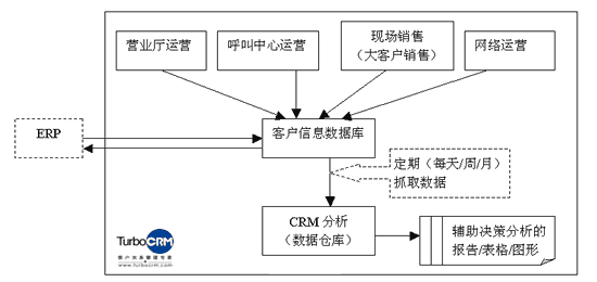對于多數(shù)已經(jīng)和正在考慮應(yīng)用CRM的企業(yè)來說,這是不可或缺的步驟,通過流程型CRM的應(yīng)用,在企業(yè)上下將CRM的概念和基礎(chǔ)數(shù)據(jù)的采集從無到有地建立了起來。但是,很快,在大量的客戶數(shù)據(jù)積累起來之后,對數(shù)據(jù)的分析將成為重?fù)?dān)。因此,作為CRM的專業(yè)軟件提供商,TurboCRM正在研究并已經(jīng)在某些行業(yè)提供不同于OLAP(online analytical processing在線分析方法)的專門工具來進行數(shù)據(jù)分析。