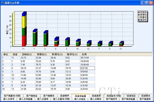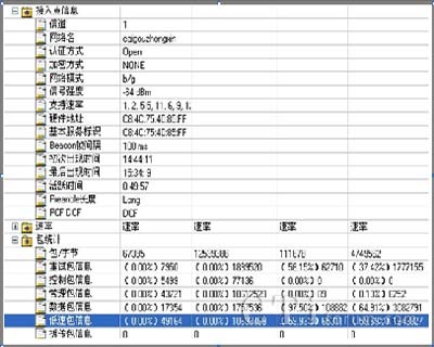 該系統(tǒng)能夠向用戶提供豐富的802.11 a/b/g/n無線參數(shù),包括信號強度覆蓋參數(shù),同頻干擾及鄰頻干擾參數(shù),管理幀、控制幀、數(shù)據(jù)幀及各種無線幀傳輸速率的統(tǒng)計參數(shù)等;系統(tǒng)能基于以上各類統(tǒng)計參數(shù),并通過實時進行各種數(shù)據(jù)業(yè)務測試,獲取網(wǎng)絡的數(shù)據(jù)業(yè)務參數(shù)指標,分析WLAN網(wǎng)絡質量問題。