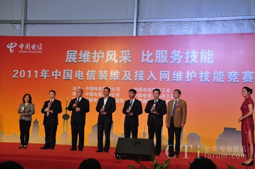 CTI論壇(ctiforum)11月30日消息(記者 張潔):近日,“2011年中國電信裝維及接入網(wǎng)維護(hù)技能競賽”決賽在上海舉行,來自全國各。ㄗ灾螀^(qū)、直轄市)電信分公司的31支代表隊(duì)參加了本次大賽。烽火通信作為本次競賽的主要協(xié)辦單位之一,從競賽人員培訓(xùn)、設(shè)備安裝測試、競賽試題開發(fā)、選派裁判、現(xiàn)場設(shè)備保障等方面全程協(xié)助,并榮獲中國電信集團(tuán)“最佳支撐獎(jiǎng)”榮譽(yù)稱號。