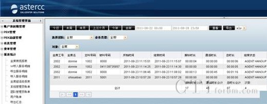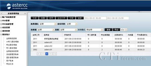 asterCC自動生成的各種數(shù)據(jù)報(bào)表,讓您能很快的從成千上萬的通話中分析到關(guān)鍵的信息。這樣銷售業(yè)績及客服質(zhì)量的情況便清晰可見。根據(jù)豐富的數(shù)據(jù)報(bào)表,給決策者做戰(zhàn)略性市場定位提供有力的數(shù)據(jù)參考,對業(yè)務(wù)的開展也起到了促進(jìn)作用,同時(shí)也便于進(jìn)行員工的績效考核。
