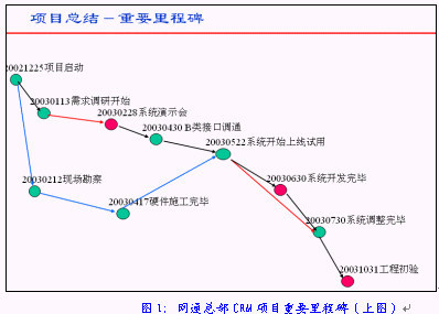中國網(wǎng)通集團(tuán)的"中國網(wǎng)通集團(tuán)大客戶信息管理分析及一站服務(wù)系統(tǒng)"(以下簡稱網(wǎng)通總部CRM項目)的合同簽約儀式在這里舉行,合同總額約為人民幣3000萬元。而作為合同執(zhí)行方的是HOLLYCRM(合力金橋軟件)公司,在一個月前才從北京合力金橋系統(tǒng)集成公司拆分出來。HOLLYCRM的總裁曲道俊先生在拿到這份合同時輕輕松了一口氣,用艱苦卓絕、峰回路轉(zhuǎn)、跌宕起伏等等一系列字眼來形容這連續(xù)4個月的應(yīng)標(biāo)過程決不為過,畢竟所有的努力并沒有白費(fèi)。但曲道俊先生并沒有完全沉浸在這種商場角逐取勝的快樂當(dāng)中, 畢竟這么大的一個項目要由一個前身為事業(yè)部的公司來完全承擔(dān)實施畢竟不是一件容易的事, 他馬上整理了思路, 撥通了負(fù)責(zé)這個項目實施的項目經(jīng)理盧毅的電話:半小時后我們辦公室見。
