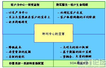 服務(wù)型呼叫中心的未來發(fā)展道路必須與企業(yè)的目標(biāo)相結(jié)合,圍繞如何幫助企業(yè)創(chuàng)造客戶和留住客戶的核心目標(biāo),進(jìn)行呼叫中心的理念變革和流程變革,作者在《服務(wù)型呼叫中心的未來之路》一文中已經(jīng)對服務(wù)型呼叫中心的未來發(fā)展方向進(jìn)行了初步的探討。但如何將客戶導(dǎo)向的理念融入到呼叫中心的運(yùn)營中,如何重新設(shè)計(jì)客戶的接觸流程,依然是擺在呼叫中心運(yùn)營管理者面前的艱巨任務(wù)。為了便于表述,下文中提到的呼叫中心都是指服務(wù)型的呼叫中心。圖1 呼叫中心的變革