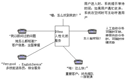 基于CTI(電信和計(jì)算機(jī)集成)技術(shù)和call center(呼叫中心)技術(shù)的INtess客戶服務(wù)平臺(tái),積累網(wǎng)上600多套設(shè)備業(yè)務(wù)開(kāi)發(fā)和運(yùn)行實(shí)踐的經(jīng)驗(yàn),運(yùn)用專(zhuān)業(yè)化的設(shè)計(jì),全面解決電信客戶服務(wù)中的難題: