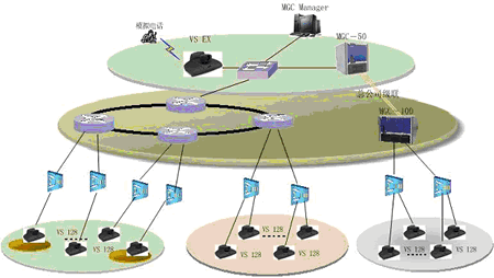 一般來說,在省公司同時(shí)參與會(huì)議的人數(shù)較多,考慮配置比較大的系統(tǒng),由某一領(lǐng)導(dǎo)召集一些相關(guān)成員在此開會(huì);在地市公司同時(shí)參與會(huì)議的人數(shù)較少,只是一些主要領(lǐng)導(dǎo)參加會(huì)議,考慮配置比較小的系統(tǒng);同時(shí),為了實(shí)現(xiàn)終端之間管理和傳送音頻、視頻和數(shù)據(jù),需要MCU來協(xié)調(diào)終端的工作,并與上級MCU相級聯(lián),擴(kuò)大會(huì)議的規(guī)模。另外,可以增加一套T.120服務(wù)器,該系統(tǒng)是利用多媒體技術(shù)幫助使用者對工作中的各種信息進(jìn)行處理,如共享數(shù)據(jù)、共享應(yīng)用程序、實(shí)現(xiàn)文件的雙向傳輸?shù)龋瑥亩鴺?gòu)造出一個(gè)多人共享的工作空間。以及增加一套VOD系統(tǒng),它集視頻采集、點(diǎn)播、廣播于一體,這樣就可以將視頻會(huì)議的內(nèi)容實(shí)時(shí)的錄制到本地,也可將一些培訓(xùn)資料放在視頻點(diǎn)播里,便于對貴公司員工進(jìn)行培訓(xùn),還能通過視頻廣播的功能,讓使用PC機(jī)的人員不在會(huì)議室,便可以通過瀏覽器實(shí)時(shí)的看到和聽到正在召開的會(huì)議。