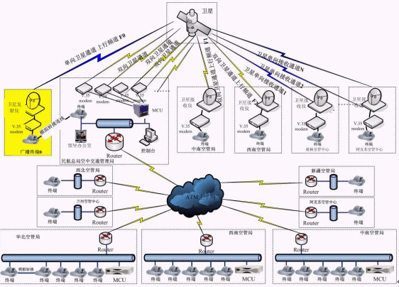 中國民用航空總局空中交通管理局(簡稱總局空管局)是民航總局管理全國空中交通服務、民用航空通信、導航、監(jiān)視、航空氣象、航行情報的職能機構,下設有相應職能處和綜合部門及隸屬的技術支持單位,其現(xiàn)行行業(yè)管理體制為總局空管局、地區(qū)管理局空管局、空管中心(站)三級管理;運行組織形式基本是區(qū)域管制、進近管制、機場管制為主線的三級空中交通服務體系。隨著各種通訊技術的高速發(fā)展,民航總局空中交通管理局、各地區(qū)空管局及空管中心(站)之間的信息交流活動日益頻繁,由于現(xiàn)場會議、集中培訓等現(xiàn)有主要的交流方式涉及資源面較廣、召集過程時間較長、操作復雜且成本較高,目前已無法滿足民航總局空管系統(tǒng)的日常管理、辦公和培訓等的需求。因此,如何依靠各種先進的技術手段,尤其是信息技術的最新成果,來加強管理及各級單位間的溝通,提高工作效率,降低管理成本,是擺在民航總局空管系統(tǒng)面前的當務之急。中國民航空管系統(tǒng)視頻會議系統(tǒng)結構示意圖